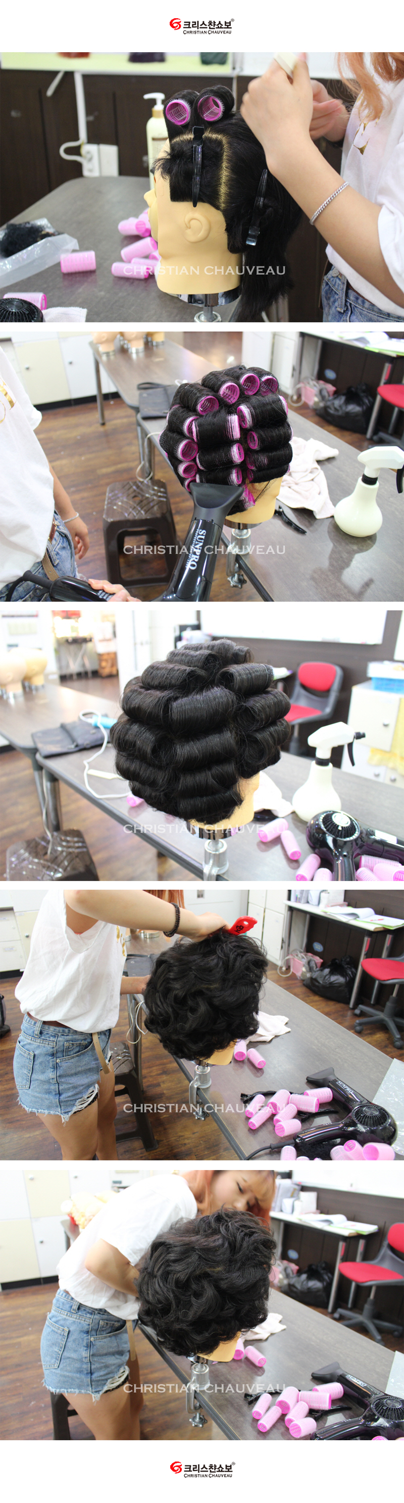 헤어자격증반 롤세팅 연습 모습 입니다^^*