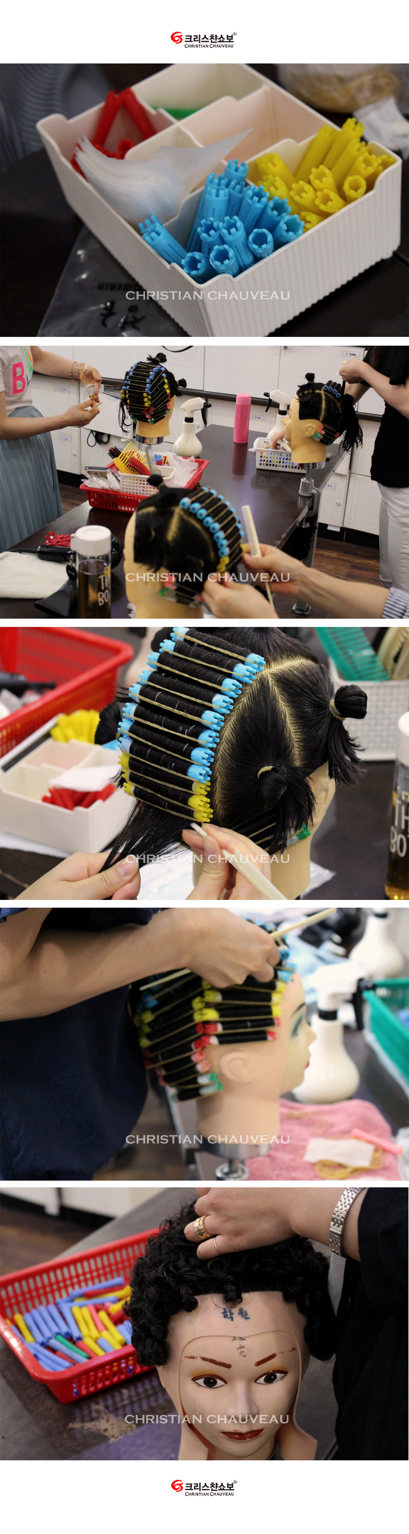 헤어자격증반 헤어 퍼머넌트 웨이브(기본형) 연습 모습^^*