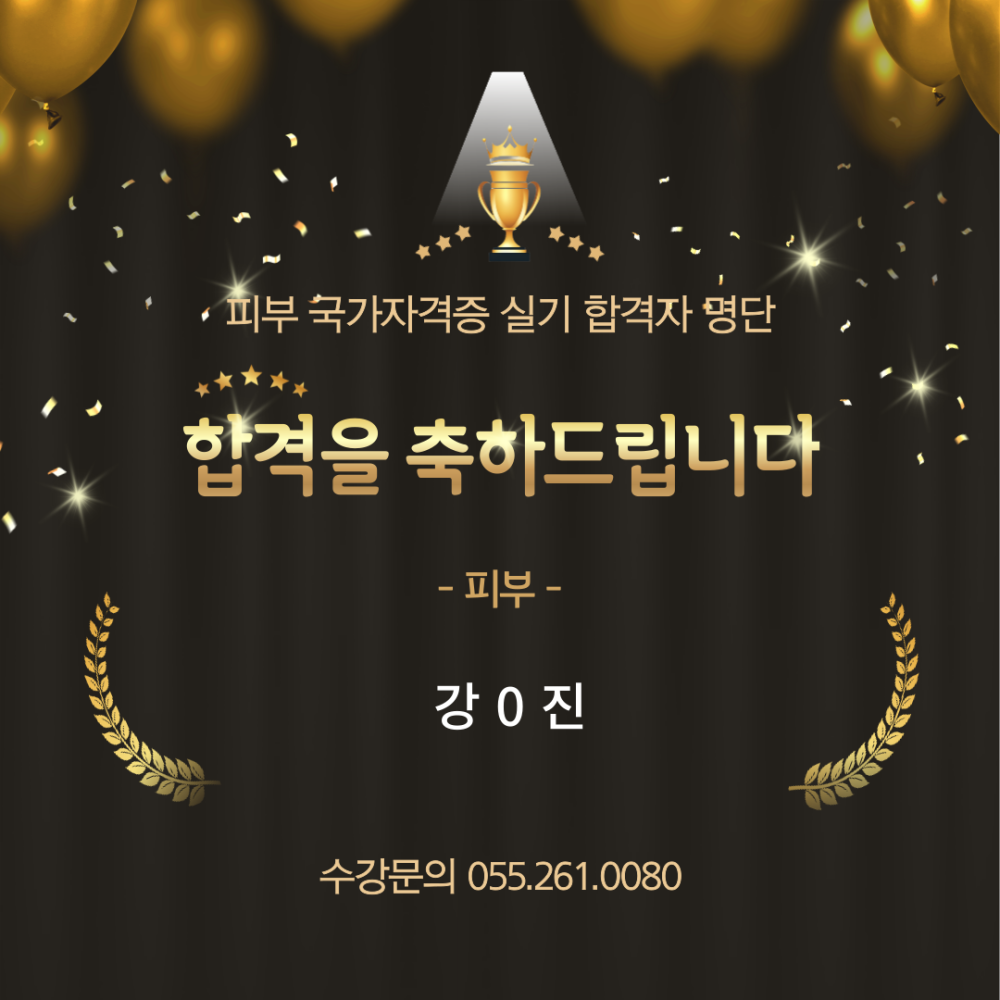 피부국가자격증 최종 합격을 진심으로 축하드립니다!