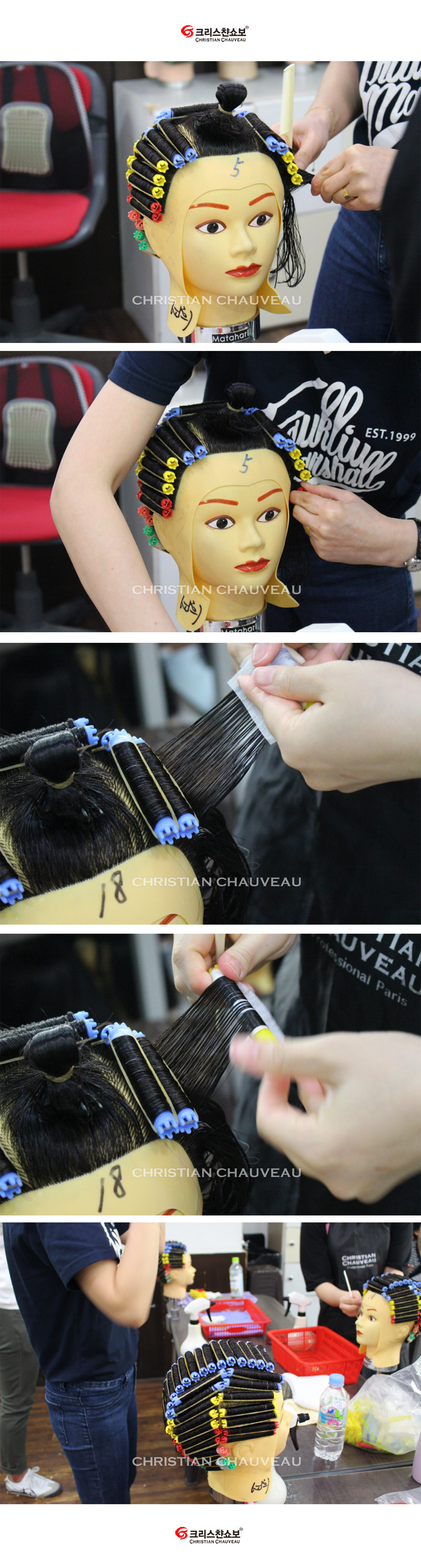 미용사(헤어)자격증반 헤어 퍼머넌트 웨이브(기본형) 연습 모습 입니다^^*