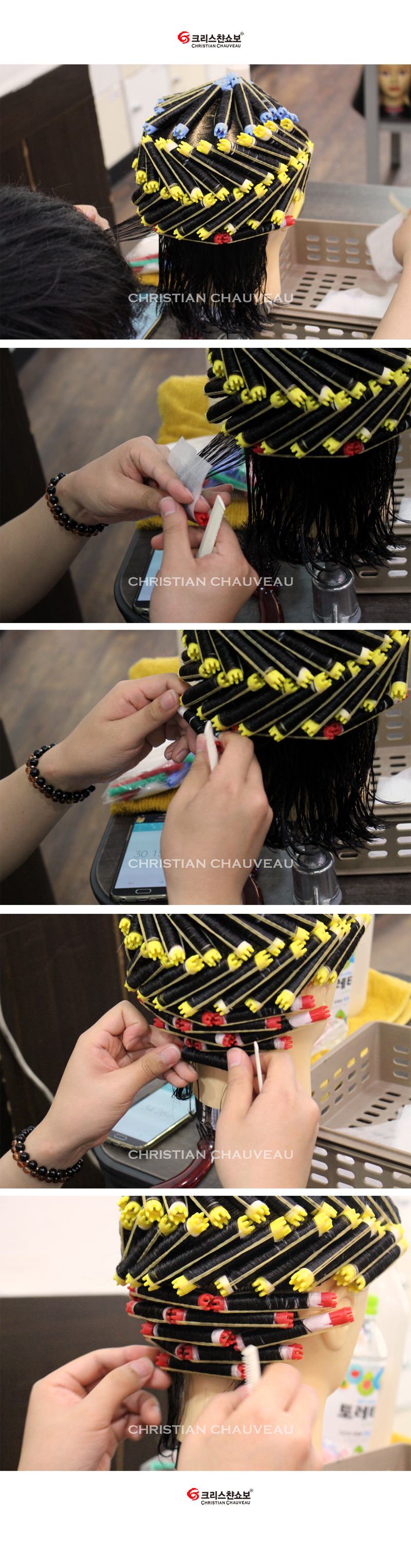 헤어자격증반 헤어퍼머넌트웨이브 시험대비 연습 모습입니다^^*