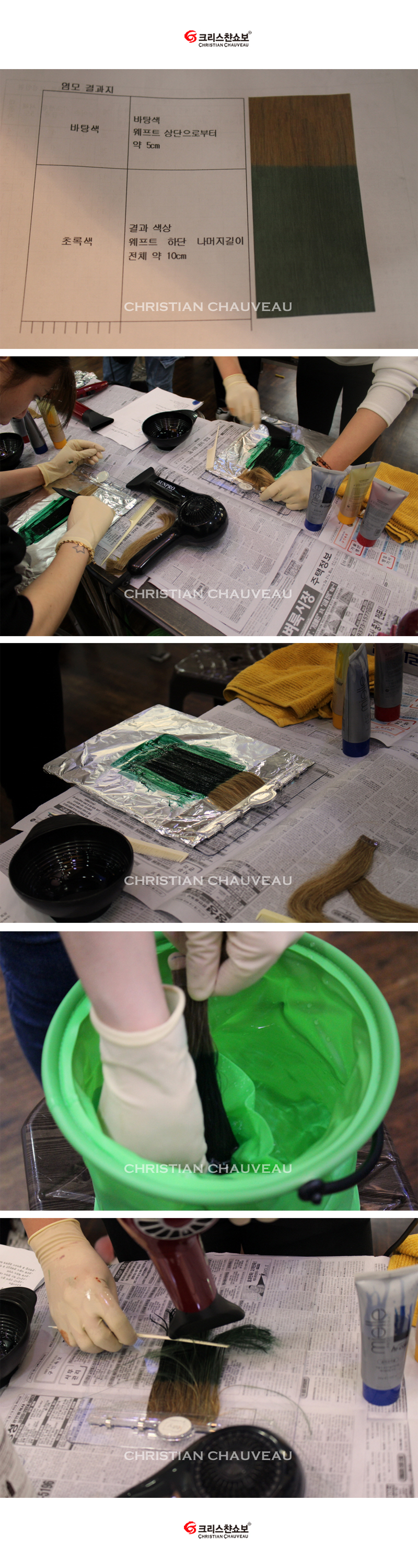 헤어자격증반 헤어컬러링(초록) : 염색 수업 모습입니다^^*