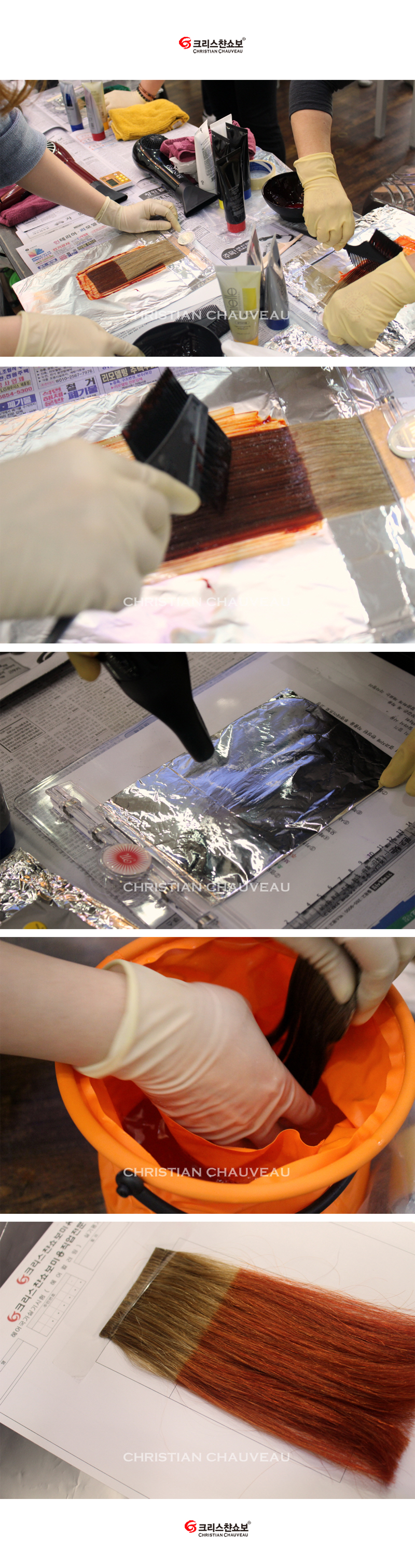 헤어자격증반 헤어컬러링(주황) : 염색 연습 모습입니다^^*