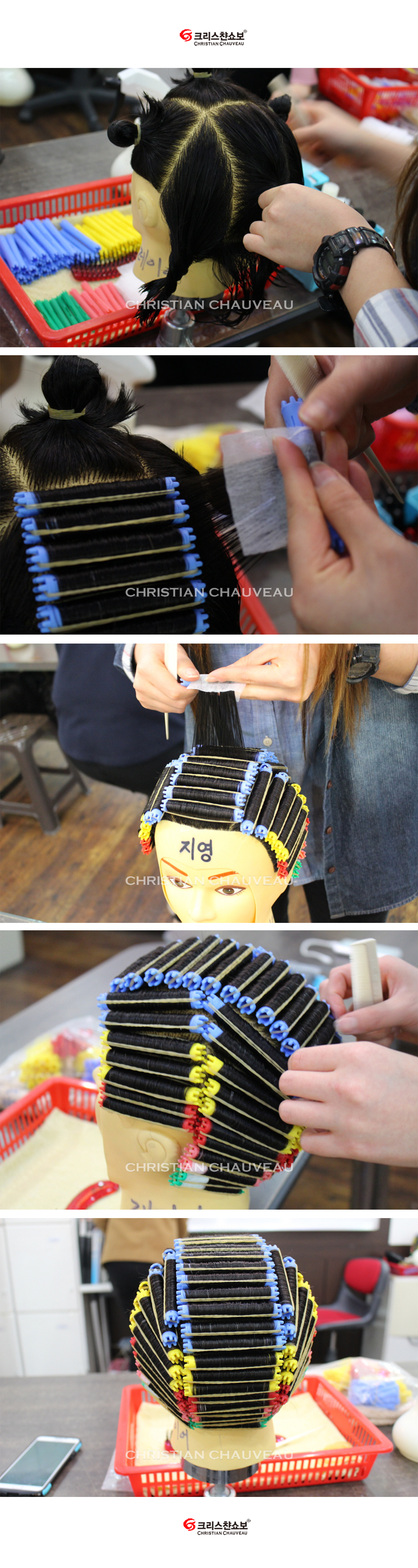 헤어자격증반 헤어 퍼머넌트 웨이브(기본형) 연습 모습 입니다^^*
