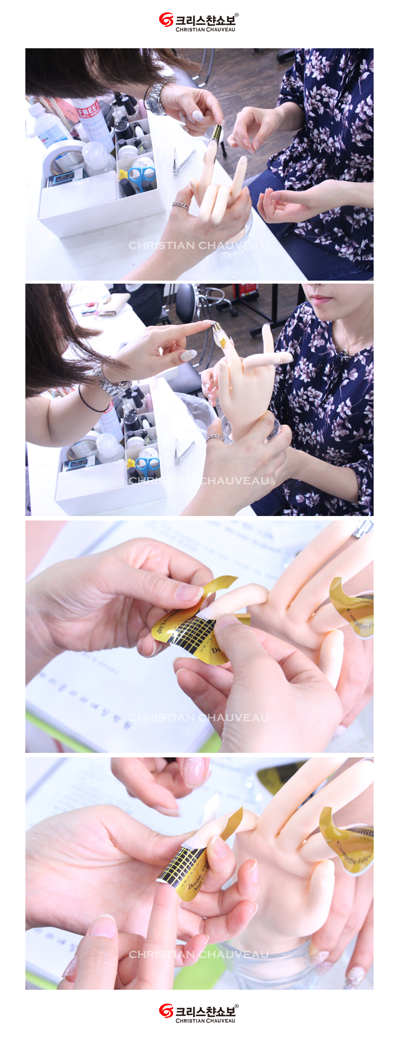 오늘 쇼보는 미용사(네일)자격증과정의 네일 연장의 기초! 폼지 붙이는 모습입니다.