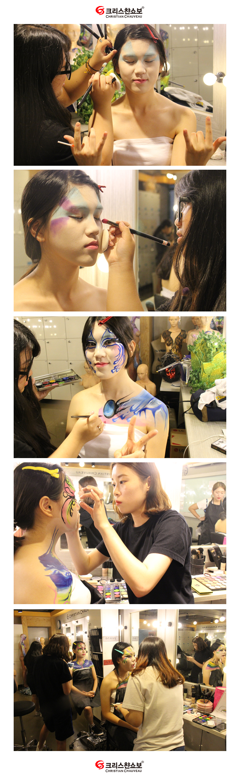 이번 사진은 메이크업 2급 분장반 학생들의 시험 준비모습입니다.