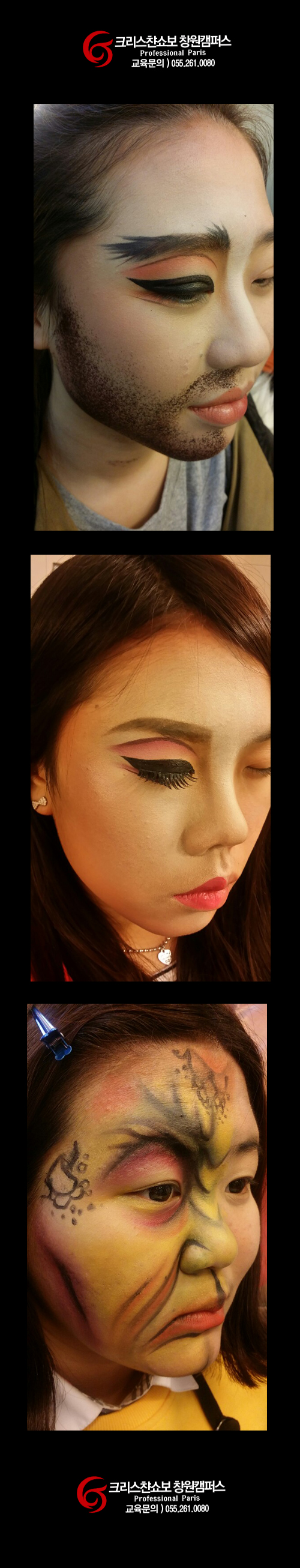 성수미 오수은 전지민 학생의 분장수업의 모델모습이네요
