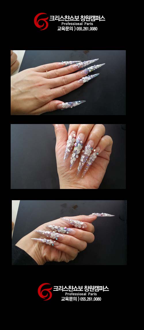 스틸레토 쉐입으로 길게 완성한 아크릴 네일아트 입니다