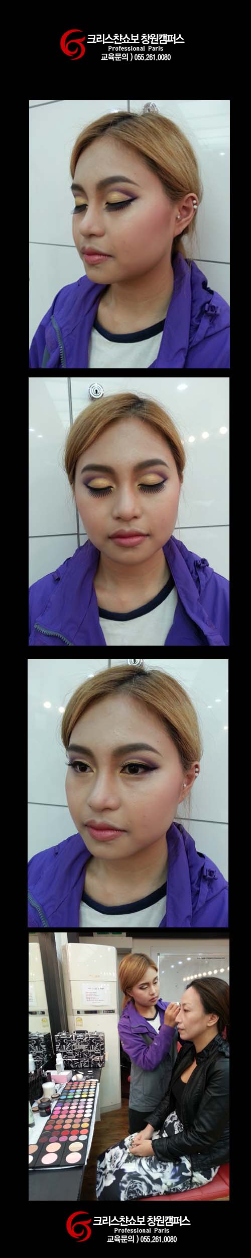 오늘 수업시간에는 고도의 그라데이션 기술을 요하는 아이홀 메이크업을 해보았습니다