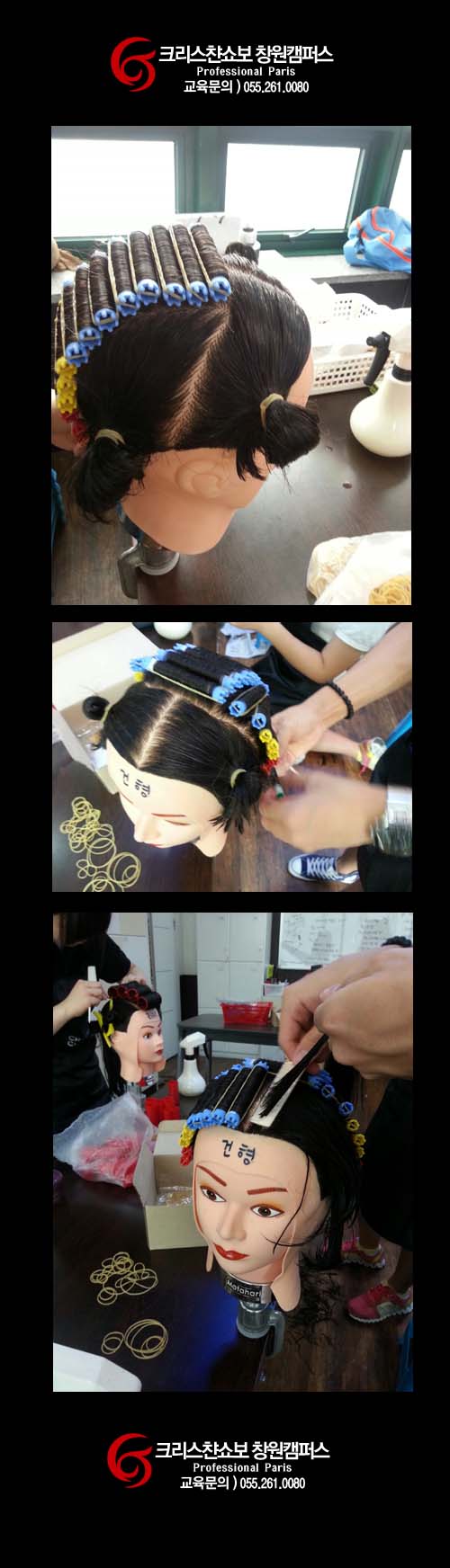 수업 및 학원모습 | 헤어자격증반 퍼머와인딩 하는모습