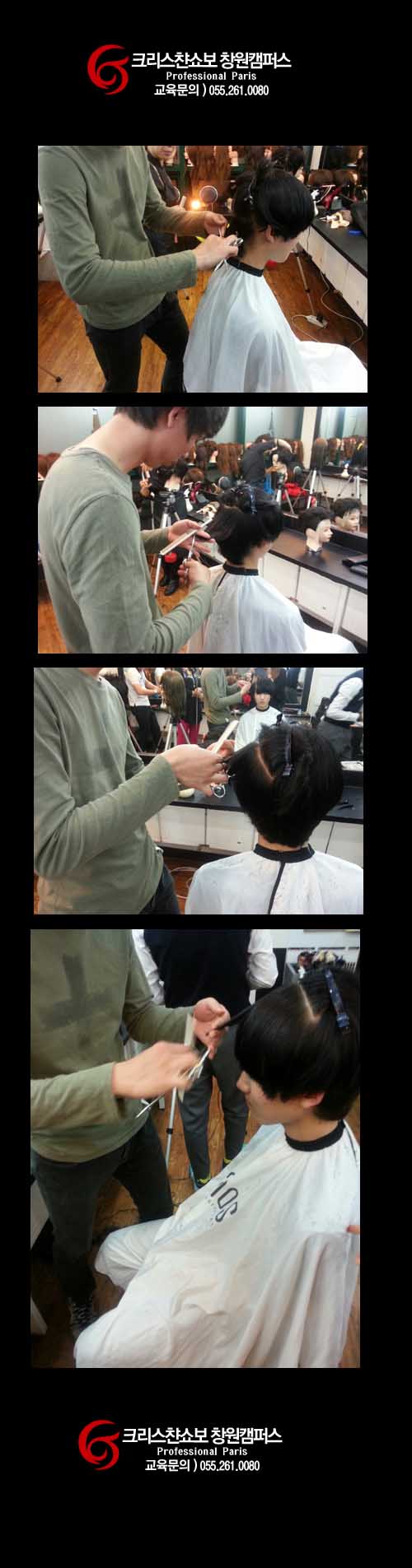 졸업을 앞두고 친구 이진욱 자격증반 학생의 머리를 직점 잘라주네요.