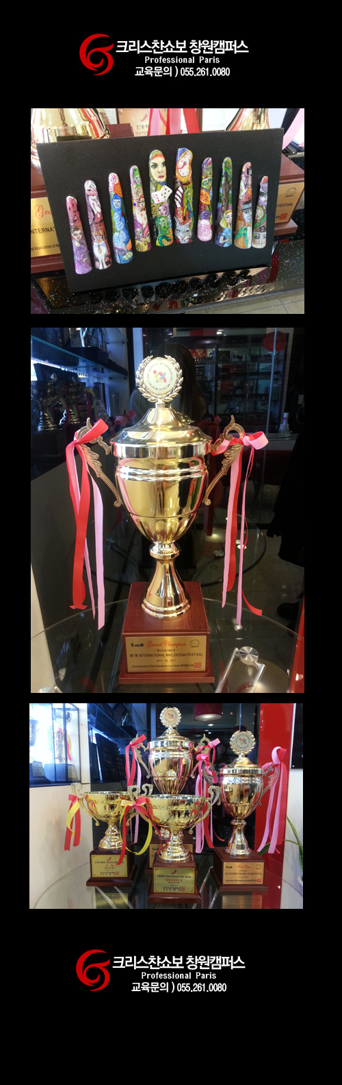 수업 및 학원모습 | 네일트로피 수상 페이지 정보 작성자 크리스챤쇼보 작성일13-01-21 18:07 조회13,116회 댓글0건 관련링크 이전글 다음글 목록 본문 크리스챤쇼보 - 네일반 선생님들과 학생들이 힘을합쳐 수상한 네일 트로피들 입니다.수상자들 모두 축하드려요크리스챤쇼보 뷰티아카데미 창원캠퍼스055 - 261 - 0080 댓글목록 등록된 댓글이 없습니다. 이전글 다음글 목록