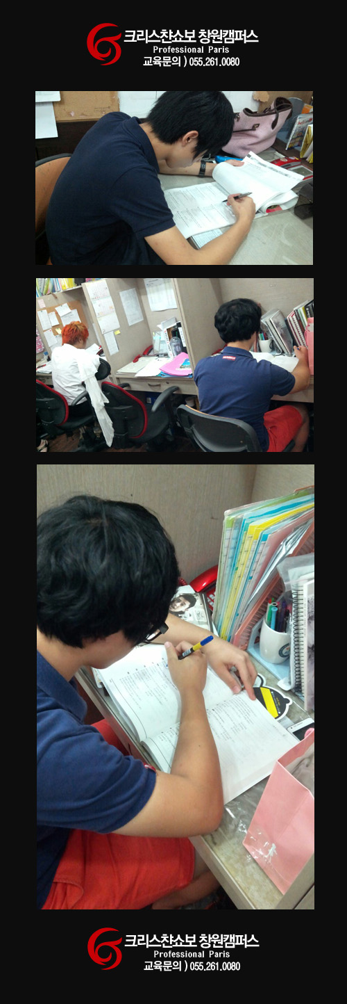 헤어 자격증반 남학생들이 시험을 앞두고 못다한 공부들을 하고있네요 ^_^