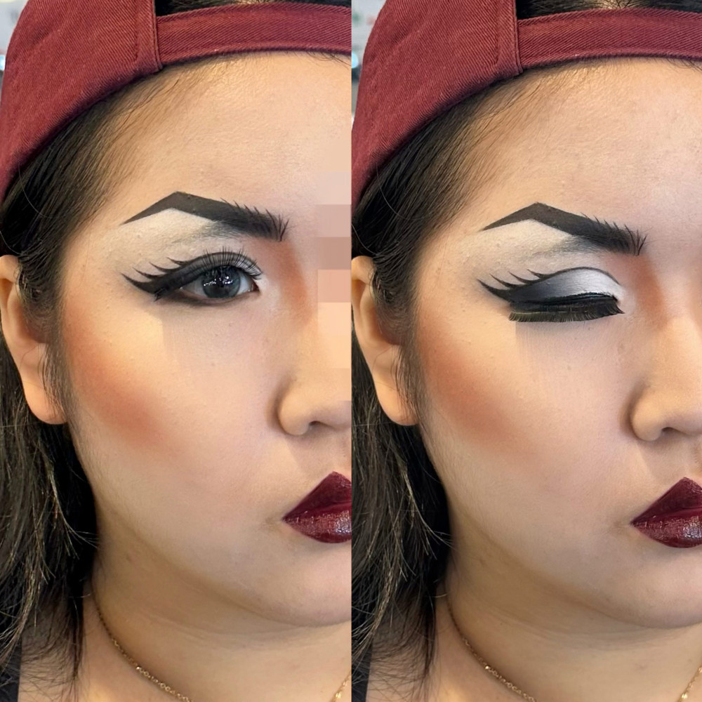펑크는 화이트, 그레이, 블랙의 무채색 컬러를 활용하여 선적인 날카로운 느낌을 살려주는 메이크업입니다 !