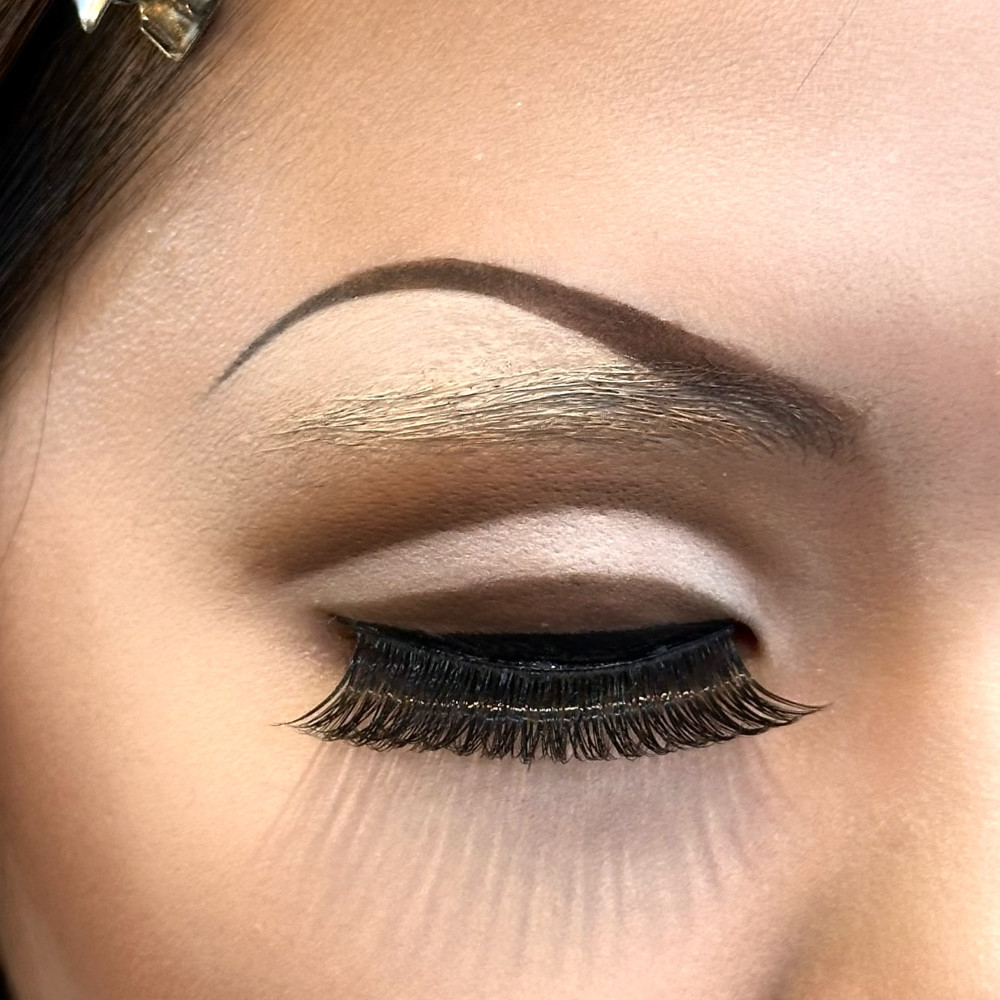 아이라인은 꼼꼼히 그려주고, 속눈썹은 뷰러 후 모델 눈에 맞게 커팅한 인조 속눈썹을 부착해 깊고 그윽한 눈매를 연출해줍니다.