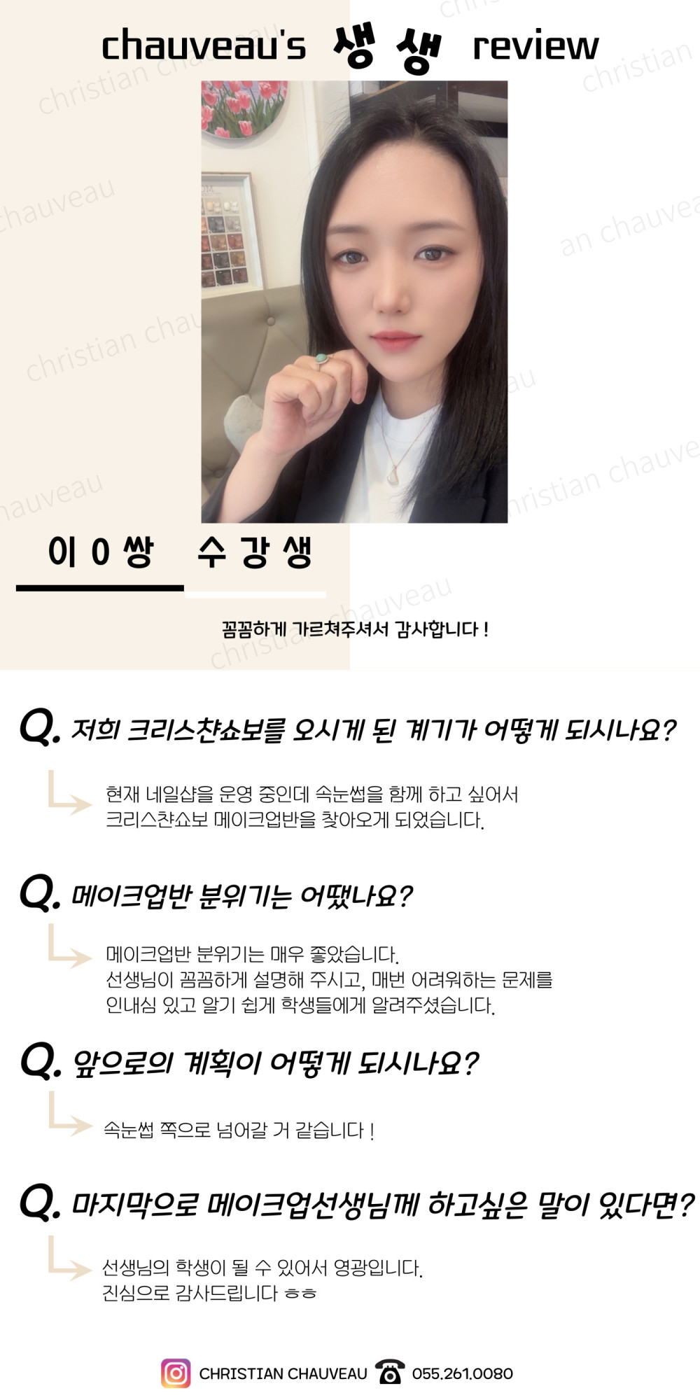 창원마산진해미용학원 메이크업국가자격증 이0쌍 수강생 인터뷰 페이지 정보 작성자 크리스챤쇼보 작성일24-12-04 10:54 조회3,111회 댓글0건 관련링크 이전글 다음글 목록 본문 합격을 축하드립니다 ♥ 메이크업 수강문의 055.261.0080 댓글목록 등록된 댓글이 없습니다. 이전글 다음글 목록
