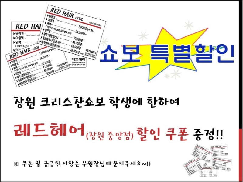 레드헤어(창원중앙점) 할인쿠폰 입니다!