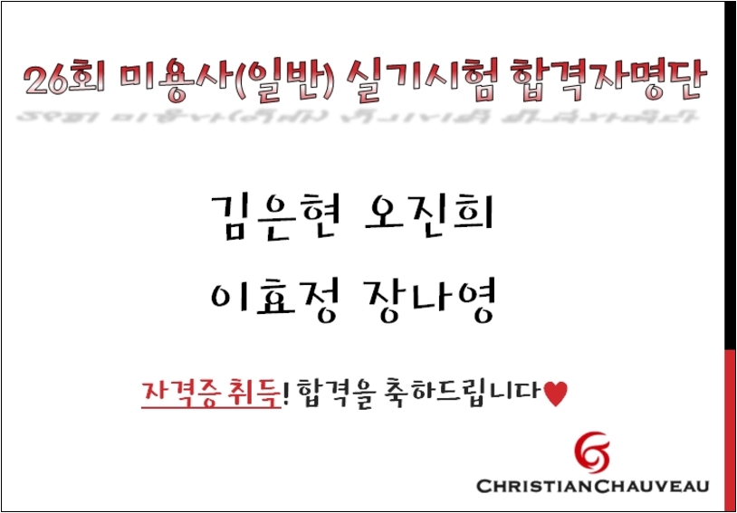 26회 미용사(일반) 실기시험 합격자 명단입니다^^*