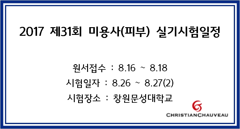 2017 제31회 미용사(피부) 실기시험일정 -창원- 페이지 정보 작성자 크리스챤쇼보 작성일17-08-14 15:09 조회34,833회 댓글0건 관련링크 이전글 다음글 목록 본문 2017 제31회 미용사(피부) 실기시험일정 -창원-원서접수 : 8.16 ~ 8.18시험일자 : 8.26 ~ 8.27(2)시험장소 : 창원 문성대학교창원미용학원 크리스챤쇼보055 261 0080 댓글목록 등록된 댓글이 없습니다. 이전글 다음글 목록