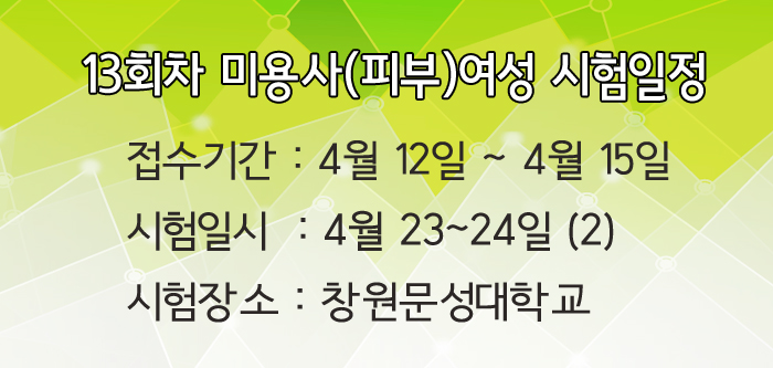 제13회차 미용사(피부)여성 시험일정 페이지 정보 작성자 크리스챤쇼보 작성일16-03-30 12:06 조회29,934회 댓글0건 관련링크 이전글 다음글 목록 본문 제13회차 미용사(피부)여성 시험일정을 알려드립니다.접수기간 : 4월 12일 ~ 4월 15일시험일시 : 4월 23~24일 (2)시험장소 : 문성대학교창원미용학원크리스챤쇼보055 261 0080 댓글목록 등록된 댓글이 없습니다. 이전글 다음글 목록