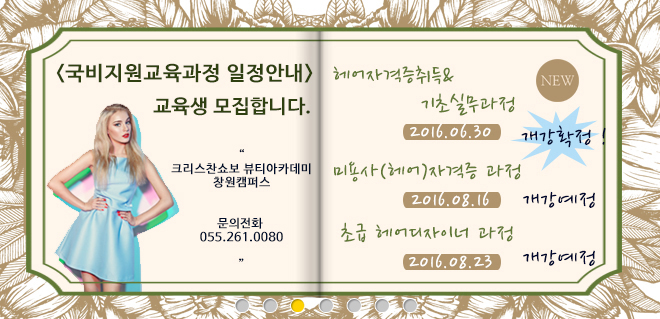 국비무료교육 교육생 모집합니다. 페이지 정보 작성자 크리스챤쇼보 작성일16-05-11 13:34 조회31,708회 댓글0건 관련링크 이전글 다음글 목록 본문 <국비지원교육과정 일정안내>교육생 모집합니다.헤어자격증취득&기초실무과정 : 2016년 6월 30일 - 개강 확정미용사(헤어)자격증과정 : 2016년 8월 16일 - 개강예정초급헤어디나이너과정 : 2016년 8월 23일 - 개강예정교육문의055 261 0080 댓글목록 등록된 댓글이 없습니다. 이전글 다음글 목록
