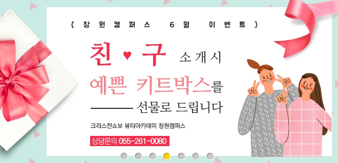 ♥ 6월 이벤트 페이지 정보 작성자 크리스챤쇼보 작성일16-06-09 12:45 조회39,721회 댓글0건 관련링크 이전글 다음글 목록 본문 친구 소개시예쁜 키트박스를 선물로 드려요!~친구들에게 학원 소개 많이해주세요!!창원미용학원 크리스챤쇼보055 261 0080 댓글목록 등록된 댓글이 없습니다. 이전글 다음글 목록