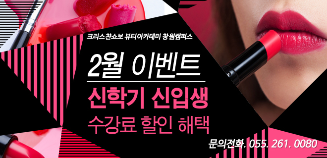 ★ 2월 이벤트 ★ 페이지 정보 작성자 크리스챤쇼보 작성일16-02-03 10:07 조회30,078회 댓글0건 관련링크 이전글 다음글 목록 본문 ★ 2월 이벤트 ★신학기 신입생수강료 할인 해택드립니다!!~많은 해택이 있어용!! 얼른 전화주세요~♥창원미용학원 크리스챤쇼보055 261 0080 댓글목록 등록된 댓글이 없습니다. 이전글 다음글 목록