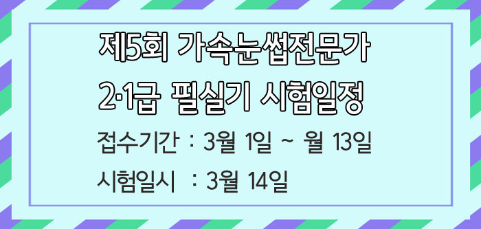 제5회 가속눈썹전문가 2·1급 필·실기 시험일정 페이지 정보 작성자 크리스챤쇼보 작성일16-02-26 15:53 조회28,190회 댓글0건 관련링크 이전글 다음글 목록 본문 제5회 가속눈썹전문가 2·1급 필·실기 시험일정을 알려드립니다.접수기간 : 3월 1일 ~ 3월 13일시험일시 : 3월 14일창원미용학원크리스챤쇼보055 261 0080 댓글목록 등록된 댓글이 없습니다. 이전글 다음글 목록