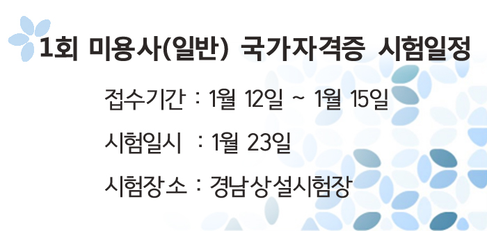 1회 미용사(일반) 국가자격증 시험일정 페이지 정보 작성자 크리스챤쇼보 작성일16-01-08 11:41 조회29,568회 댓글0건 관련링크 이전글 다음글 목록 본문 1회 미용사(일반) 국가자격증 시험일정을 안내드립니다.접수기간 : 1월 12일 ~ 1월 15일시험일시 : 1월 23일시험장소 : 경남상설시험장창원미용학원 크리스챤쇼보055 261 0080 댓글목록 등록된 댓글이 없습니다. 이전글 다음글 목록