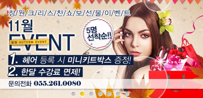 ★ 11월 이벤트 ★ 페이지 정보 작성자 크리스챤쇼보 작성일15-11-05 16:47 조회32,158회 댓글0건 관련링크 이전글 다음글 목록 본문 ★창원크리스챤쇼보선물이벤트!!!★11월 이벤트~!!5명 선착순!!1.과목 등록 시 미니키트박스 증정합니다!!2. 한달 수강료 면제많은 문의 바랍니다창원미용학원 크리스챤쇼보055 261 0080 댓글목록 등록된 댓글이 없습니다. 이전글 다음글 목록
