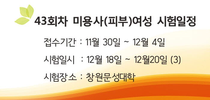 43회차 미용사(피부)여성 시험일정 페이지 정보 작성자 크리스챤쇼보 작성일15-11-18 16:42 조회31,786회 댓글0건 관련링크 이전글 다음글 목록 본문 ★미용사(피부)여성 시험일정 공지사항★ 접수기간 : 11월 30일~ 12월 4일자격검정일 : 12월 18~20일 (3일)장소 : 창원문성대학 좋은결과 있기를 쇼보에서 응원합니다.^^창원미용학원 크리스챤쇼보055 261 0080 댓글목록 등록된 댓글이 없습니다. 이전글 다음글 목록