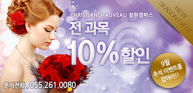 -★전 과목 10% 9월 추석 이벤트★ 페이지 정보 작성자 크리스챤쇼보 작성일15-09-03 10:01 조회38,617회 댓글0건 관련링크 이전글 다음글 목록 본문 - 크리스챤쇼보 창원캠퍼스 -전 과목 10% 할인 이벤트입니다!9월 추석 이벤트를 놓치지 마세요!~창원미용학원 크리스챤쇼보055 261 0080 댓글목록 등록된 댓글이 없습니다. 이전글 다음글 목록