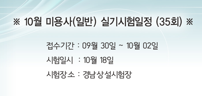 35회 미용사(일반) 실기시험일정 페이지 정보 작성자 크리스챤쇼보 작성일15-09-29 15:15 조회32,998회 댓글0건 관련링크 이전글 다음글 목록 본문 ★미용사(일반) 시험일정 공지사항★ 접수기간 : 09월 30일 ~ 10월 02일 시험일시 : 10월 18일 시험장소 : 경남상설시험장 좋은결과 있기를 쇼보에서 응원합니다.^^창원미용학원 크리스챤쇼보055 261 0080 댓글목록 등록된 댓글이 없습니다. 이전글 다음글 목록