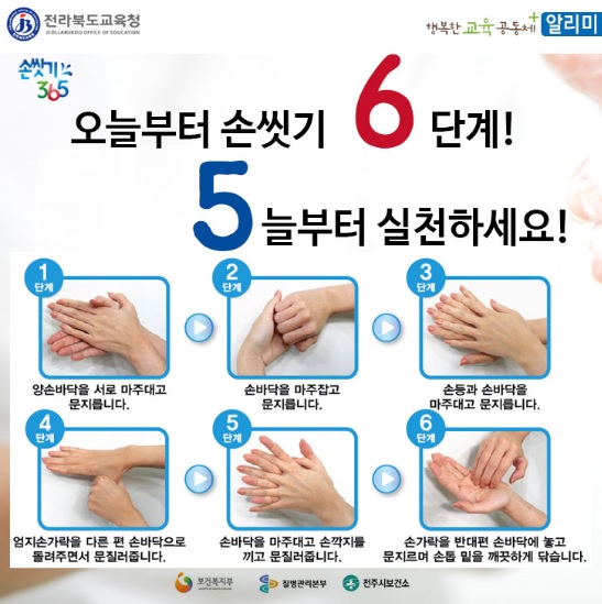 올바른 손씻기 6단계를 알려드립니다.