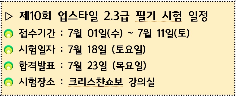 ★2015년도 제10회 업스타일 2.3급 필기 시험 일정★
