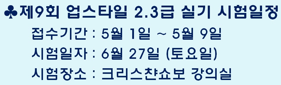★2015년도 제9회 업스타일 2.3급 실기 시험 일정★