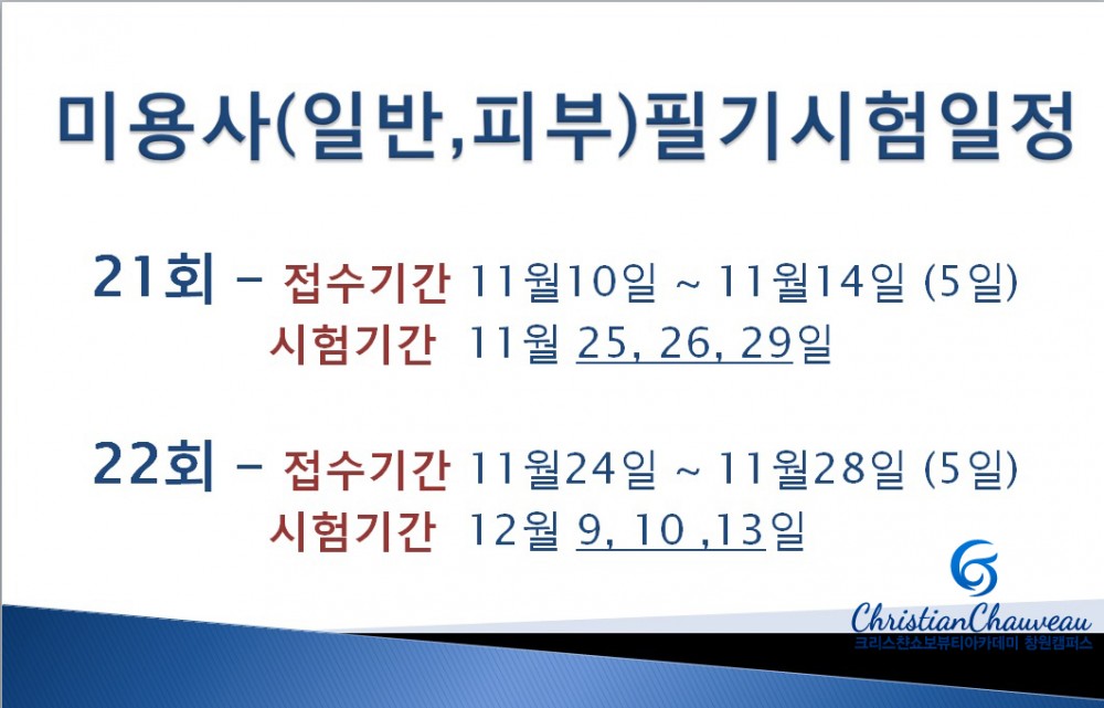 [11월시험일정]★제21,22회 미용사(일반,피부) 필기시험일정★
