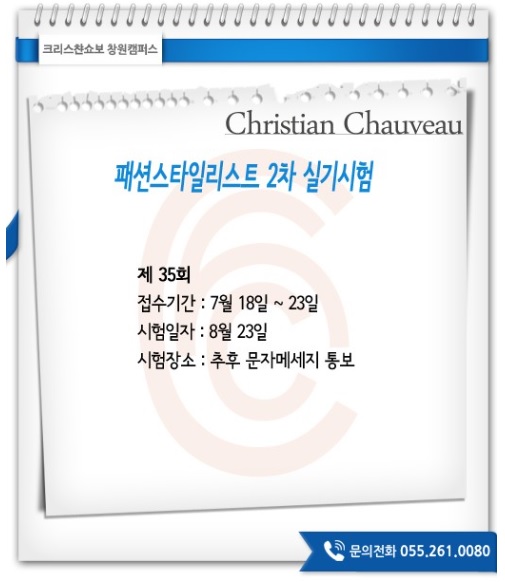 2014년 8월 패션스타일리스트 2차 실기시험 일정 페이지 정보 작성자 크리스챤쇼보 작성일14-07-25 11:29 조회30,702회 댓글0건 관련링크 이전글 다음글 목록 본문 - 크리스챤쇼보 -2014년8월 패션스타일리스트 2차 실기시험 일정제 35회접수기간 : 7월 18일(금) ~ 23일 (수)시험일자 : 8월 23일(토)시험장소 : 추후 문자메세지 통보크리스챤쇼보 뷰티아카데미 창원캠퍼스055 261 0080 댓글목록 등록된 댓글이 없습니다. 이전글 다음글 목록