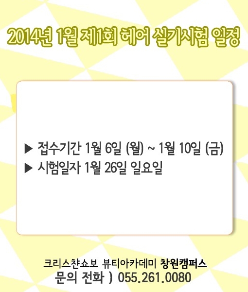 2014년 1월 시험일정 - 제1회 미용사(일반) 헤어 실기시험 일정