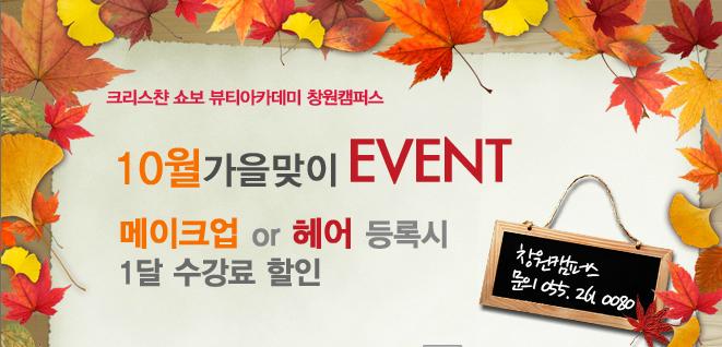 10월 EVENT ② 메이크업or헤어 등록시 1달 수강료 무료 페이지 정보 작성자 크리스챤쇼보 작성일13-10-10 15:26 조회26,102회 댓글0건 관련링크 이전글 다음글 목록 본문 크리스챤쇼보 - 10월 EVENT메이크업 OR 헤어 등록시1달 수강료 할인크리스챤쇼보 뷰티아카데미 창원캠퍼스055 - 261 - 0080 댓글목록 등록된 댓글이 없습니다. 이전글 다음글 목록