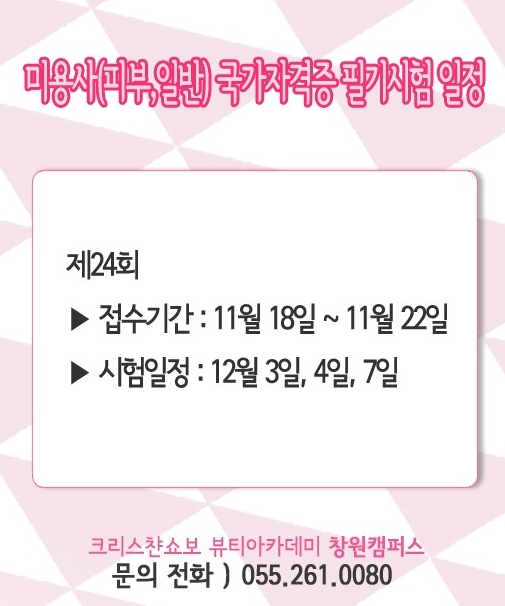 12월 시험일정 - 제 24 회 미용사(일반,피부) 필기시험 일정