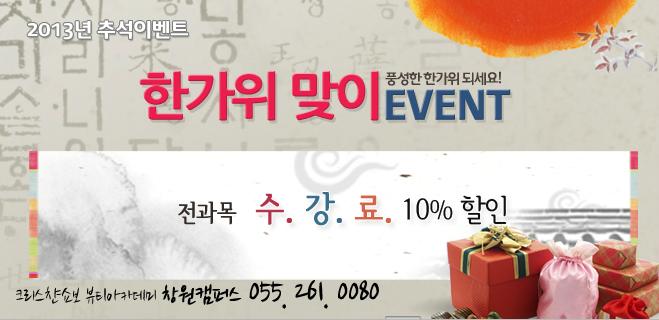 9월 EVENT 한가위 맞이 EVENT 페이지 정보 작성자 크리스챤쇼보 작성일13-09-12 14:13 조회28,934회 댓글0건 관련링크 이전글 다음글 목록 본문 크리스챤쇼보 - 2013년 추석이벤트 - 9월 EVENT한가위 맞이 EVENT전과목 수 . 강 . 료 10% 할인크리스챤쇼보 뷰티아카데미 창원캠퍼스055 - 261 - 0080 댓글목록 등록된 댓글이 없습니다. 이전글 다음글 목록
