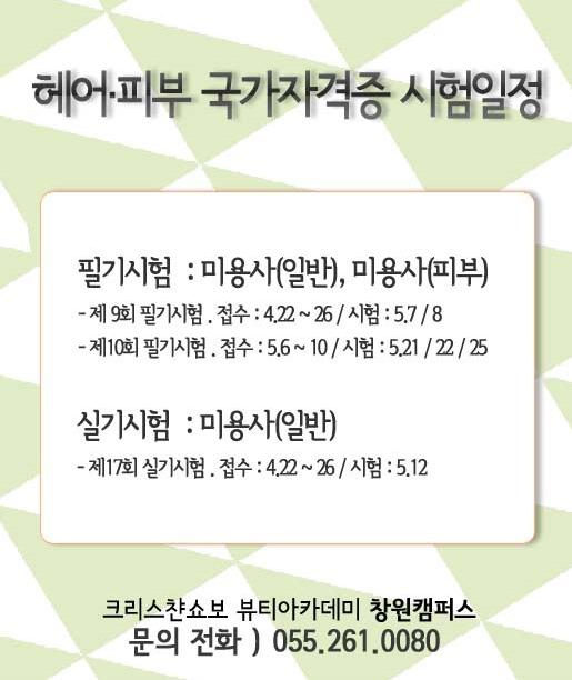 실기시험 : 미용사(일반) - 제 17회 실기시험 : 접수 4.22 ~ 26 / 시험 : 5.12