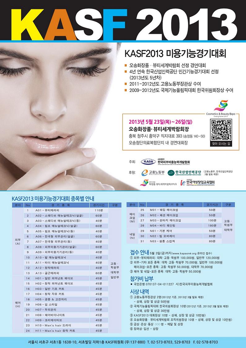 KASF2013 미용기능경기대회는 충북 오송에서 열리는 화장품·뷰티세계박람회가