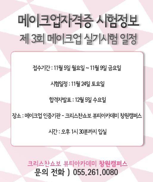 시험장소 : 메이크업 인증기관 - 크리스챤쇼보 뷰티아카데미 창원캠퍼스