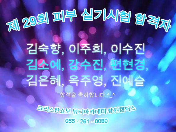 제 29회 피부 실기시험 합격자 페이지 정보 작성자 크리스챤쇼보 작성일12-08-30 19:24 조회29,984회 댓글0건 관련링크 이전글 다음글 목록 본문 학생들 너무너무 수고 많았고 앞으로도 더 열심히하는 미용인이 되길 바래요 ^_^축하해요 ~~~ 댓글목록 등록된 댓글이 없습니다. 이전글 다음글 목록