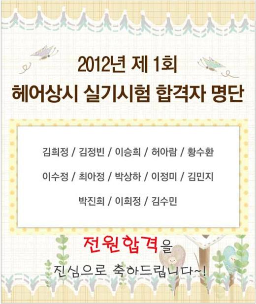 제 1회 헤어 상시 실기 시험 합격자 명단