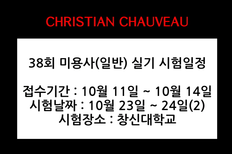 38회 미용사(일반) 실기 시험일정 페이지 정보 작성자 크리스챤쇼보 작성일16-09-06 12:16 조회36,521회 댓글0건 관련링크 이전글 다음글 목록 본문 38회 미용사(일반) 실기 시험일정을 안내드립니다.접수기간 : 10월 11일 ~ 10월 14일시험일시 : 10월 23~24일(2)시험장소 : 창신대학교창원미용학원 크리스챤쇼보055 261 0080 댓글목록 등록된 댓글이 없습니다. 이전글 다음글 목록