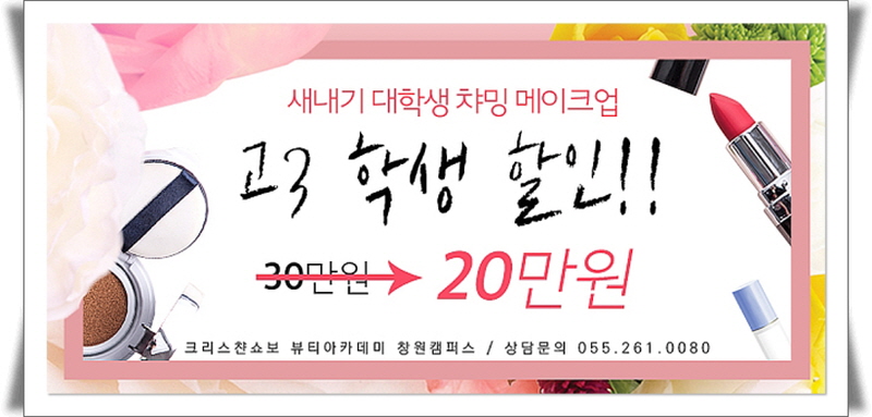★ 새내기 대학생 챠밍 메이크업 수업료 할인이벤트 ★ 종료 페이지 정보 작성자 크리스챤쇼보 작성일16-11-21 10:46 조회34,167회 댓글0건 관련링크 이전글 다음글 목록 본문 ★ 새내기 대학생 챠밍 메이크업 수업료 할인이벤트 ★30만원(원가) → 20만원(할인가) 10만원 할인!!고3학생만 적용^^*창원미용학원 크리스챤쇼보055 261 0080 댓글목록 등록된 댓글이 없습니다. 이전글 다음글 목록