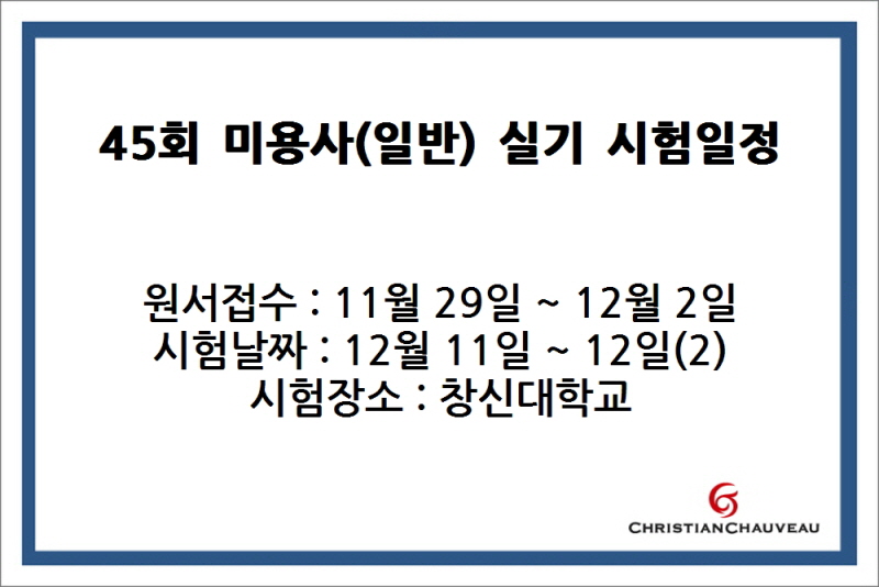 45회 미용사(일반) 실기 시험일정을 안내해드립니다